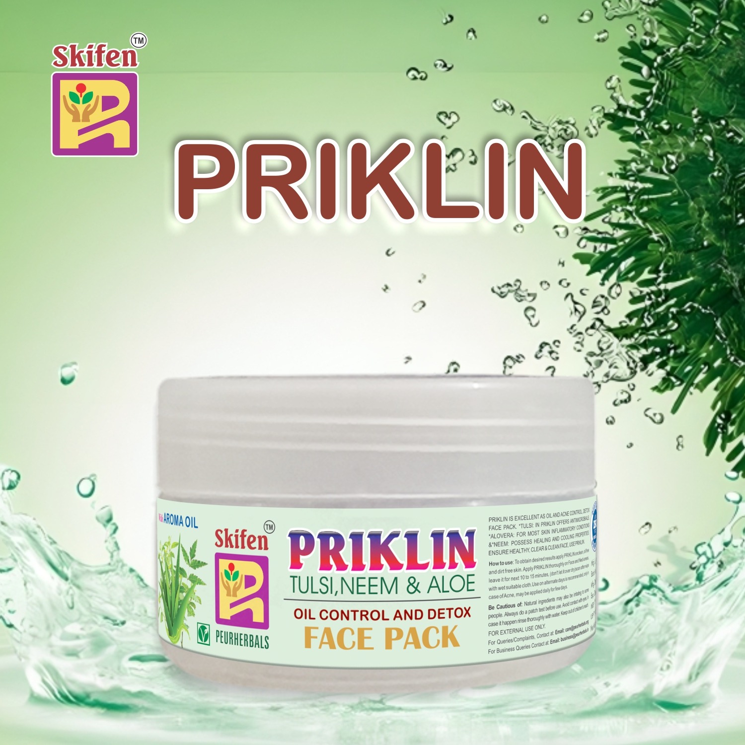 प्रिक्लिन फेस पैक मिश्रित और तैलीय त्वचा के लिए उपयुक्त है, खासकर उन लोगों के लिए जो कील, मुंहासे, हाइपरपिग्मेंटेशन और दाग-धब्बों से ग्रस्त हैं ।